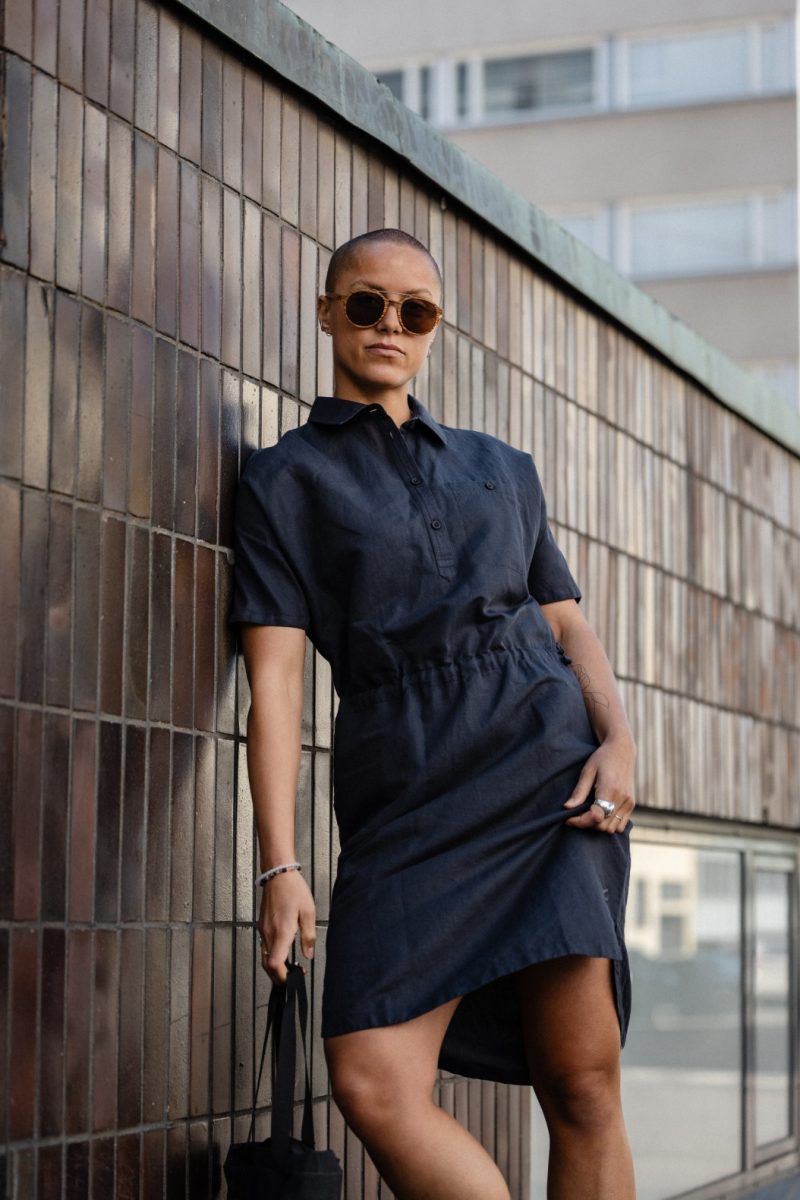 Das Notsgi Dress besteht aus 50 Prozent Hanf und 50 Prozent Bio-Baumwolle – der perfekte atmungsaktive Materialmix für einen funktionalen Sommerlook. Das Design mit halber Knopfleiste, lockerer Passform und verstellbarem Bund sorgt für optimale Bewegungsfreiheit. Besonders praktisch sind die Brusttasche sowie die in den Nähten versteckten Seitentaschen.